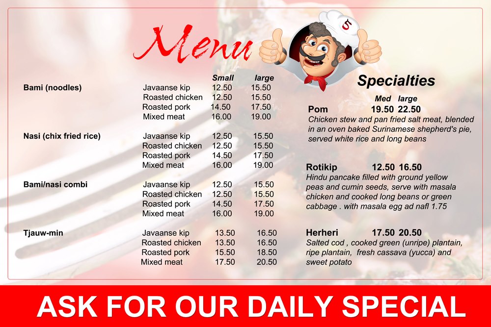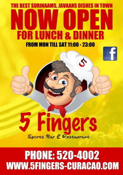 5 fingers is a recently opened restaurant at the Rodeweg …, behind the Sint Elisabeth Hospital. It is a Surinamese restaurant with traditional dishes from the Surinamese kitchen