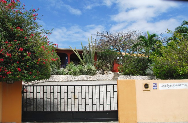 Ban Topa Apartments is a small resort with 2-room apartments and 3-room bungalows. All apartments and bungalows have a beautiful view over the historical capital Willemstad. The apartments are only a short distance away from the fisherman's village Boca St. Michiel, the beach and a diving school. 'Ban Topa' in Papiamentu literally means 'The Meeting', and that is what we want. When we welcome our guests we do all we can to make their stay as nice as possible. 'Ban Topa' Apartments is a modest complex, but unique with quality apartments with two and three rooms. All apartments have been furnished in Caribean style. Also the gardens around the apartments exist of many tropical trees, plants and cactusses. There is also a nice swimming-pool for all guests. All apartments have a private parkingarea inside our, with walls surrounded, complex. The apartments guarantee you peace, space and privacy. To make your stay as comfortable as possible, all apartments have a hammock to enjoy the beautiful view and tropical atmosphere. Ban Topa: Great enough to be small!