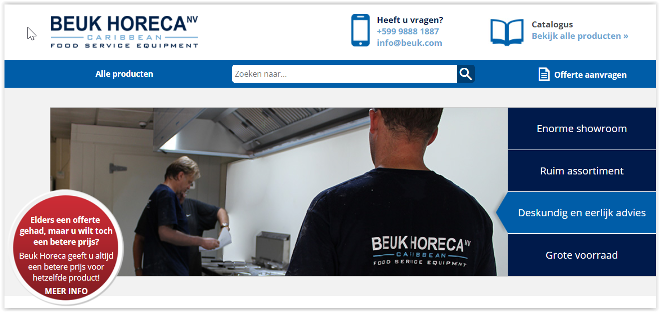Beuk Horeca is totaalleverancier en houdt zich bezig met de levering en service van Horeca-apparatuur, Koeltechniek & Grootkeukentechniek. Tevens leveren wij luchtbehandeling & airconditioning systemen, grootkeukengereedschappen, vaatwastechniek, horecameubilair, kleinmaterialen / food service equipment voor horeca instellingen en bedrijfskeukens en restauratieve voorzieningen.