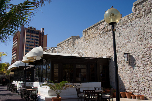 Based in the Waterfront Arches.The restaurant’s centerpiece is a caribbean-style Dal Toro, which is indoors and overlooks the seafront. The outdoor seating is along the edge of the fort and overlooks the Caribbean sea. The menu change daily but might include a pasta dish such as tagliatelle with pesto and shrimp or pumpkin ravioli with ricotta and bacon but also pizzas. Some dishes have a touch of island panache, such as grilled salmon with béarnaise sauce.