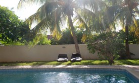 De Tropenvilla met de typische Caribische uitstraling is zo gebouwd dat er altijd een verkoelende wind door het huis waait, waardoor de temperatuur in de woon- en slaapvertrekken altijd aangenaam is (bovendien zijn alle vertrekken voorzien van Airco). Het tropische klimaat op Curaçao maakt echter dat iedereen buiten leeft. Ontbijt gezamelijk op de grote veranda aan de voorzijde van de villa of lounge met een drankje in de schaduw op de zeer ruime achterporch. Geniet van de zon op de ligbedden aan het privézwembad (10 bij 5 meter), trap een balletje of beachball en badminton op het grote grasveld of luier en lees een boek in de schaduw van de oude tropische boom. Barbeque en kokkerel in de buitenkeuken en eet heerlijk met zijn allen in de tuin aan de grote eettafel of pak de auto (bij de villa te huren) en ga erop uit, het is altijd ergens op het eiland happy hour en er is een grote keuze aan heerlijke restaurants.