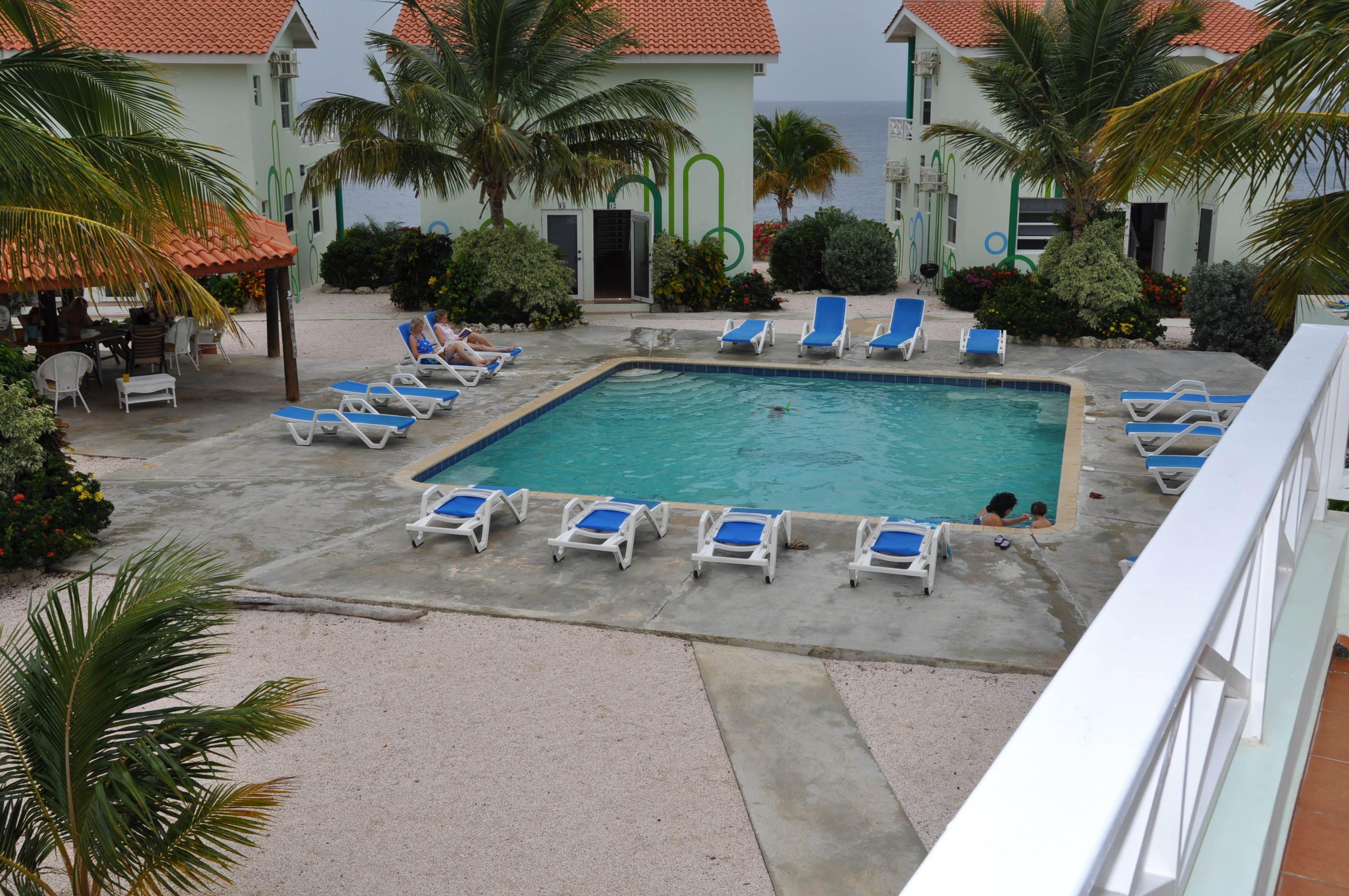 Lagun Blou, is een excellent, onlangs gerealiseerd appartementen- en bungalowresort pal naast een idyllische baai. Lagun Blou is er speciaal voor hen die aan de alledaagse hectiek willen ontsnappen en in een ontspannende, natuurrijke omgeving door modern comfort willen laten plezieren. Elk appartement bevindt zich op de kliffen aan de Caribische Zee, met een adembenemend uitzicht vanaf het dakterras en het balkon, die beide voorzien zijn van stoelen.