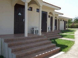 Our Lodges are suitable for 1-2 persons and are located next to the golf course of Blue Bay Beach & Golf Resort. We also have a lodge suitable for 4 persons, which is formed by 2 Lodges located next to eachother which are connected by a door.