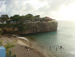 Dit is een strand als een ansichtkaart, met zijn vissersboten en een panorama over de westelijke punt van het eiland. Hier treft u aangenaam bruingekleurd grof zand aan en kleine kiezels, maar nauwelijks schaduw. Er zijn verschillende snackbars en een restaurant bij het parkeerterrein boven het strand. Een steile trap leidt u daar naar toe.